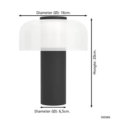 Eglo Tischlampe Ponente Stahl Schwarz 2W 250lm - 824-840 Abstimmbares Weiß | IP54 - Touch Dimmbar