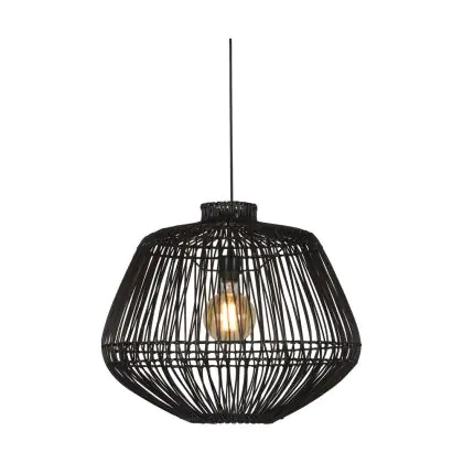 Good&Mojo Pendelleuchte Madagascar Rattan Schwarz | Geeignet für 1x E27
