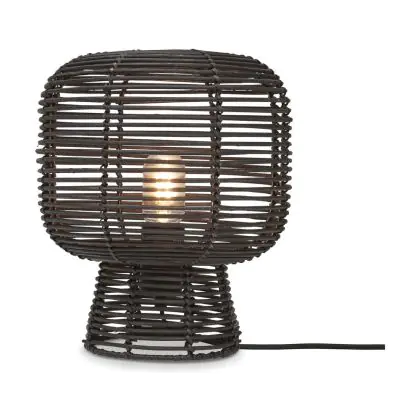 Good&Mojo Tischlampe Tanami Rattan Schwarz | Geeignet für 1x E27
