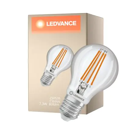 Ledvance Classic LED E27 Birne Fadenlampe Klar 7.3W 806lm - 827 Extra Warmweiß | Bewegungs- Und Lichtsensor - Ersatz Für 60W