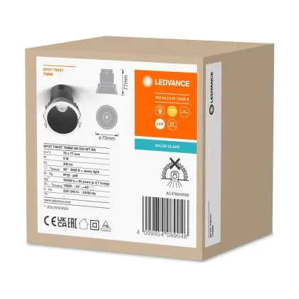 | Herstellername | LED SPOT RECESS TWIST PRO 70mm 5W 3000K White Black | |