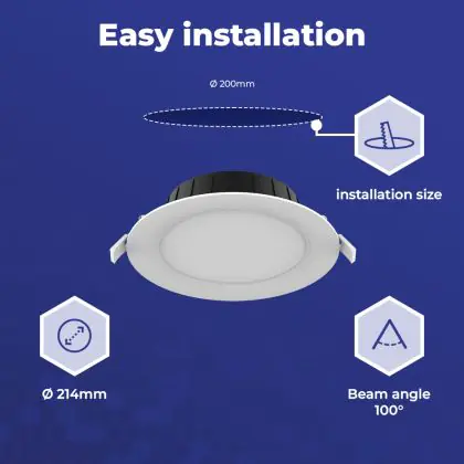 | Herstellername | Noxion LED Downlight Hera Flat Recessed White 21W 2400lm 100D - 827-830-840 CCT | 214mm - Cutout 200 | |