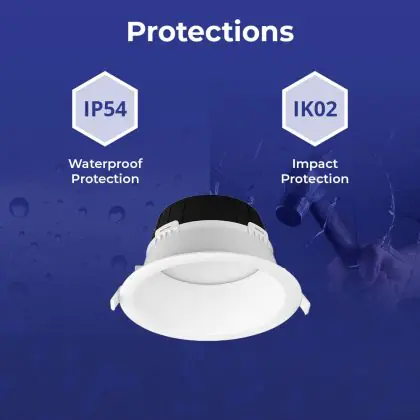 ![]() Der IP-Wert zeigt an, wie gut das Leuchtmittel gegen das Eindringen von Feuchtigkeit und Staub geschützt ist. Die erste Ziffer gibt den Schutz gegen Staub an: von 0 = „gar keinen Schutz“ bis 6 = „komplett staubdicht“. Die zweite Ziffer zeigt den Schutz gegen Feuchtigkeit an: von 0 = „gar keinen Schutz“ bis 8 = „geschützt gegen Untertauchen“. Daraus resultiert: Produkte mit einer IP44-Schutzklasse sind vor Spritzwasser geschützt, Produkte mit IP65 oder höher sind (komplett) staub- und wasserdicht. |