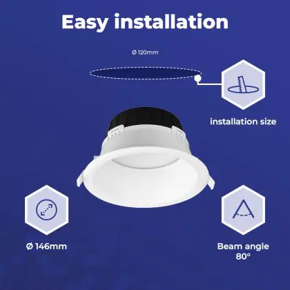 | Herstellername | Noxion LED Downlight Hera Deep Recessed White 9W 900lm 80D - 827-830-840 CCT | 146mm - Cutout 120mm | |