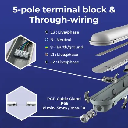 Noxion LED Feuchtraumleuchte Poseidon V3.0 35-65W 4550-9100lm - 830-865 CCT | 150cm - Durchgangsverdrahtung (5x2.5mm2)