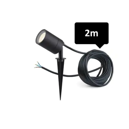 D'Lite Piquet Lumière Fuse Câble D'Alimentation Noir | IP65 - Convient pour 1x GU10 | incl. cable 2 Meter