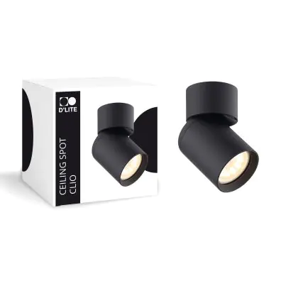 D'Lite Plafond Spot Clio Aluminium Noir Inclinable| Convient pour 1x GU10