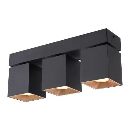 D'Lite Plafonnier Kubo Aluminium Noir Inclinable et Rotatif | IP20 - Convient pour 3x GU10