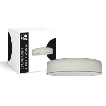 D'Lite Plafonnier Lunelle 50cm Textile Gris | Convient Pour 3x E27