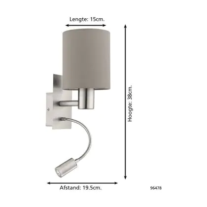 Eglo Applique Murale Pasteri Acier Nickel Satiné 40 | IP20 - Incl. Spot et Excl. 1x E27