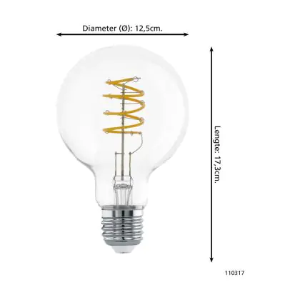 Description Eglo LED E27 Poire Claire Filament 7.3W 806lm - 827 Blanc Très Chaud | Équivalent 60W