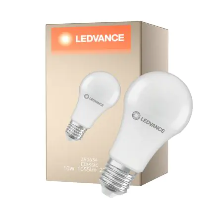 Cette ampoule Ledvance Classic LED E27 Poire Dépolie 10W 1055lm - 827 Blanc Très Chaud | Détecteur De Mouvement Et De Lumière - Équivalent 75W avec son efficacité lumineuse de lumen par watt vous permettra de profiter d’un éclairage de qualité. Avec sa durée de vie de 25000 heures, vous n’aurez pas à vous soucier de son remplacement avant quelques années.