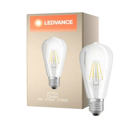 Description Ledvance Classic LED E27 Poire Filament Claire 4W 470lm - 827 Blanc Très Chaud | Équivalent 40W