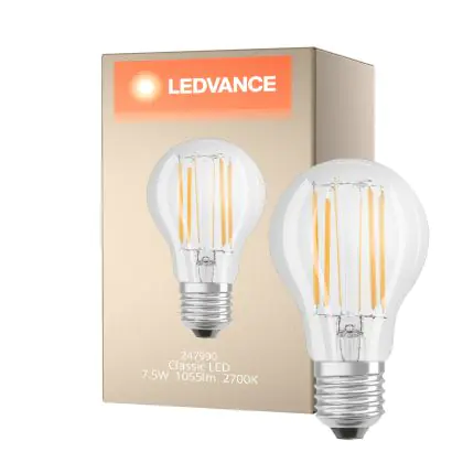 Cette ampoule Ledvance Classic LED E27 Poire Filament Claire 7.5W 1055lm - 827 Blanc Très Chaud | Dimmable - Équivalent 75W est l’alternative idéale pour la remplacement de votre ampoule classique de 75 W. La technologie LED intégrée vous offrira de nombreux avantages. Les ampoules à incandescence traditionnelles ont une durée de vie limitée. Cette alternative LED vous permettra de profiter d’un éclairage durable et fiable.