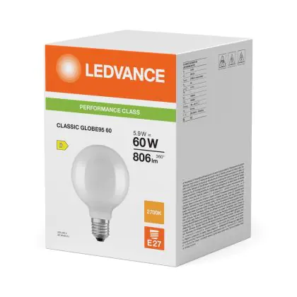 | Nom du fabricant | LED CLASSIC GLOBE P 5.9W 827 Frosted E27 | |