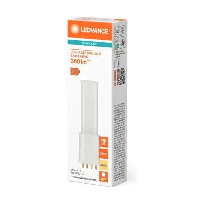 Description Ledvance Dulux LED S/E AC Mains Value 3.5W 360lm - 830 Blanc Chaud | Équivalent 7W