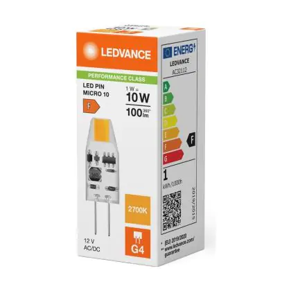 Ledvance LED Pin Micro 12V G4 Claire 1W 100lm - 827 Blanc Très Chaud | Équivalent 10W