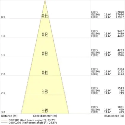 Un angle de diffusion est également appelé angle de rayonnement et indique l'angle du faisceau lumineux provenant d'une source lumineuse. Plus l'angle de diffusion en degrés (D) est petit, plus le faisceau est étroit. Vous voulez en savoir plus? Alors lisez notre blog.