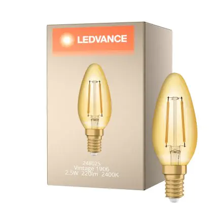 Description Ledvance Vintage 1906 LED E14 Bougie Dorée 2.5W 220lm - 824 Blanc Très Chaud | Équivalent 25W