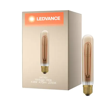 Cette ampoule Ledvance Vintage 1906 LED E27 Tube Dorée 4.8W 470lm - 822 Blanc Très Chaud | Dimmable - Équivalent 40W est l’alternative idéale pour la remplacement de votre ampoule classique de 40 W. La technologie LED intégrée vous offrira de nombreux avantages. Les ampoules à incandescence traditionnelles ont une durée de vie limitée. Cette alternative LED vous permettra de profiter d’un éclairage durable et fiable.
