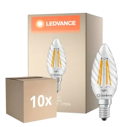 Lot 10x Ledvance Classic LED E14 TWisted Bougie Filament Claire 3.4W 470lm - 827 Blanc Très Chaud | Équivalent 40W