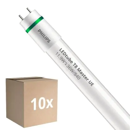 Lot 10x Philips Tube LED T8 MASTER (EM/Direct 230V) Ultra Efficiency 11.9W 2500lm - 840 Blanc Froid | 120cm - Équivalent 36W