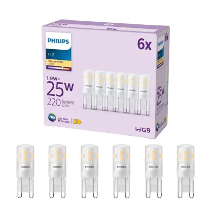 Lot 6x Philips LED Capsule G9 Dépolie 1.9W 220lm - 827 Blanc Très Chaud