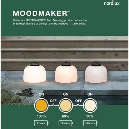 Nordlux Lampe De Chevet Kettle Batterie Blanc 4.8W 300lm - 827 Blanc Très Chaud | 3 Niveaux De Gradation Dimmable