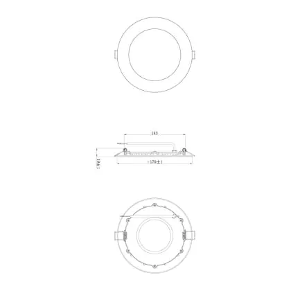 | Nom du fabricant | Noxion LED Downlight Slim V2.0 IP44 12W 3000K Cutout Ø150mm Frame Ø170mm | |