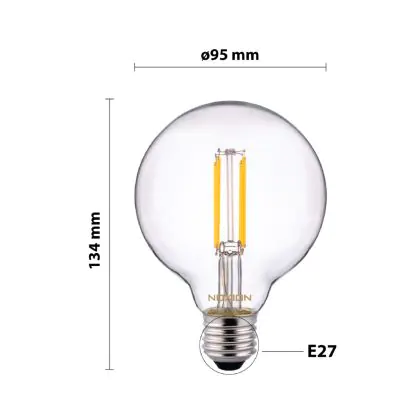 Description Noxion Lucent Filament LED E27 Globe Claire 7W 806lm - 827 Blanc Très Chaud | Dimmable - Équivalent 60W