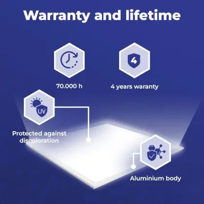 Les dimensions les plus courantes des panneaux LED sont 60x60cm (carrés) et 30x120cm (rectangulaires). Ce sont des tailles standard pour presque tous les plafonds/ des plafonds à grille. D'autres dimensions sont également disponibles, telles que 20x120cm ou 15x150cm.
