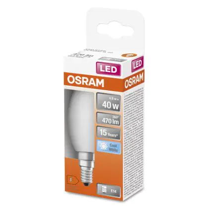 Description Osram LED Star Classic E14 Bougie Dépolie 4.9W 470lm - 840 Blanc Froid | Équivalent 40W