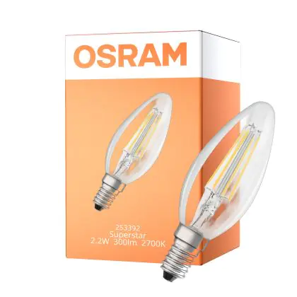 Cette ampoule Osram LED Superstar Classic E14 Bougie Filament Claire 2.2W 300lm - 927 Blanc Très Chaud | Dimmable - Équivalent 25W est l’alternative idéale pour la remplacement de votre ampoule classique de 25 W. La technologie LED intégrée vous offrira de nombreux avantages. Les ampoules à incandescence traditionnelles ont une durée de vie limitée. Cette alternative LED vous permettra de profiter d’un éclairage durable et fiable.