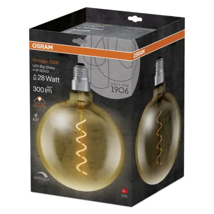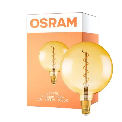 Cette ampoule Osram Vintage 1906 LED E27 Globe Filament Dorée 200mm 5W 300lm - 820 Blanc Très Chaud | Dimmable - Équivalent 40W est l’alternative idéale pour la remplacement de votre ampoule classique de 40 W. La technologie LED intégrée vous offrira de nombreux avantages. Les ampoules à incandescence traditionnelles ont une durée de vie limitée. Cette alternative LED vous permettra de profiter d’un éclairage durable et fiable.