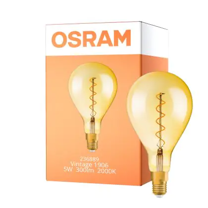 Description Osram Vintage 1906 LED E27 Poire Filament Dorée 160mm 5W 300lm - 820 Blanc Très Chaud | Dimmable - Équivalent 40W