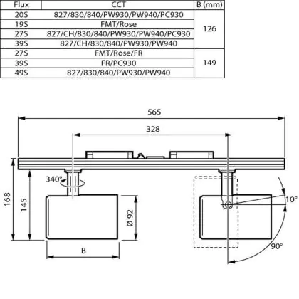 Description Philips Spot LED Sur Rail GreenSpace Evo Projecteur Blanc 59W 8000lm 41x80D - 830 Blanc Chaud