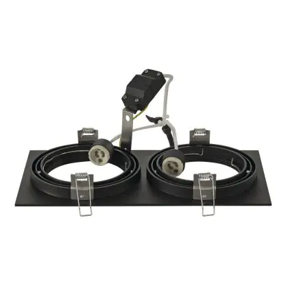 SLV New Tria 2 Spot Aluminium Noir | Convient pour 2x GU10 (AR111) est un spot LED encastrable. Ce luminaire est conçu pour un éclairage d’accentuation pour un usage domestique ou bien professionnel. Fixture Retrofit, ce spot LED SLV en Aluminium a besoin d’une place nécessaire de mm de largeur et mm de profondeur. Ce luminaire est compatible avec une ampoule GU10, il est important de faire attention si vous décidez de changer d’ampoule.