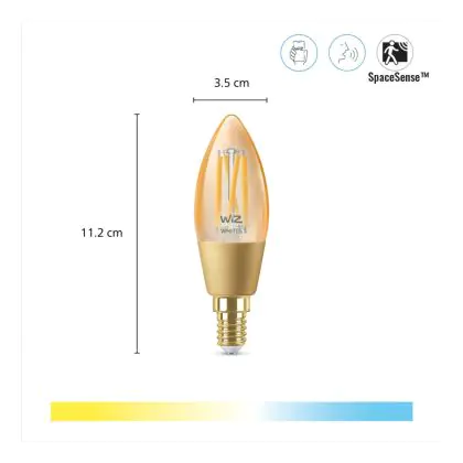 | Nom du fabricant | WiZ Filament Candle Bulb - Smart LED Lighting - Warm to Cool White Light - E14 - 25W - Gold - Wi-Fi | |